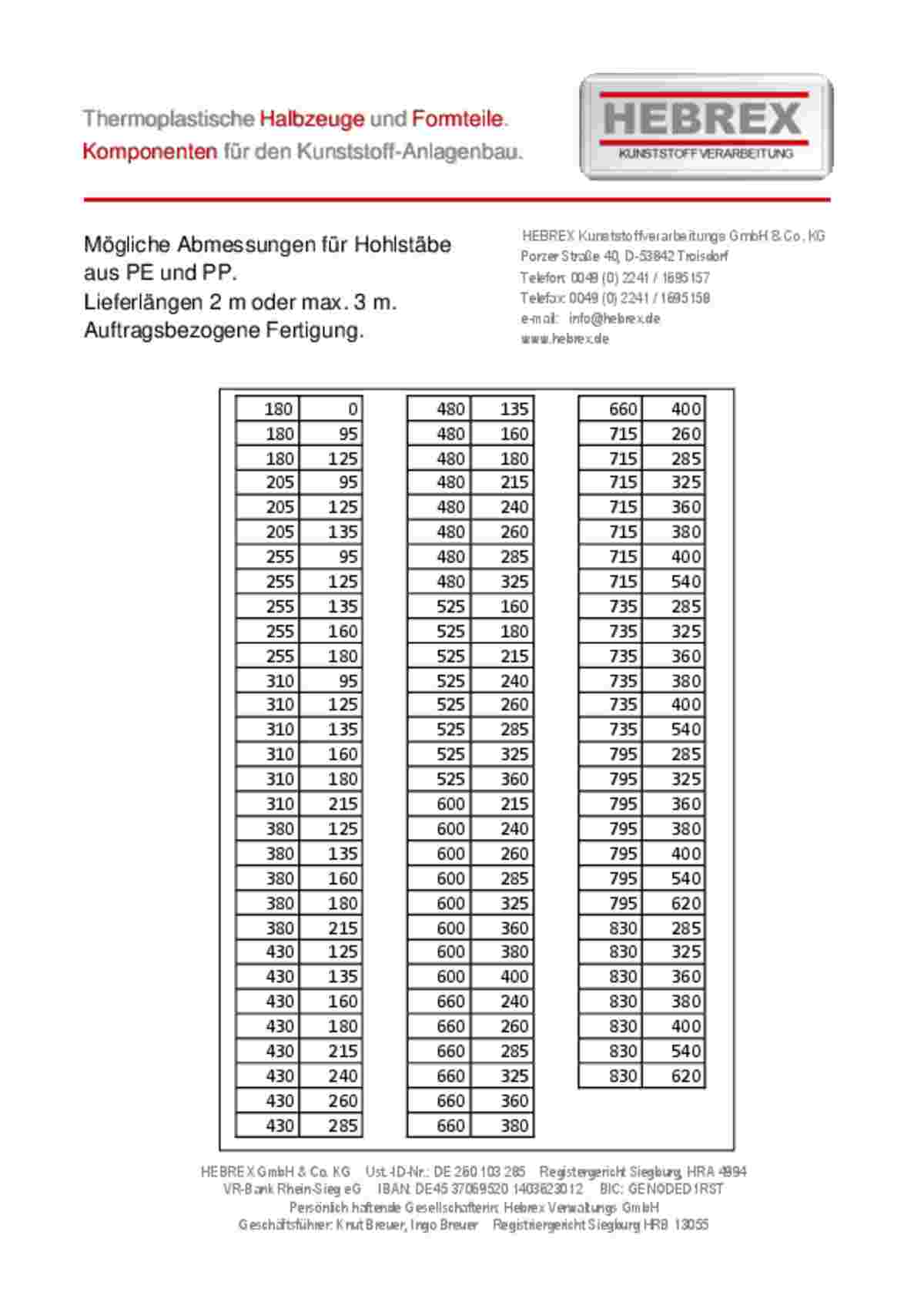 Formteile für Druckrohre aus PE- und PP-Hohlstab.
